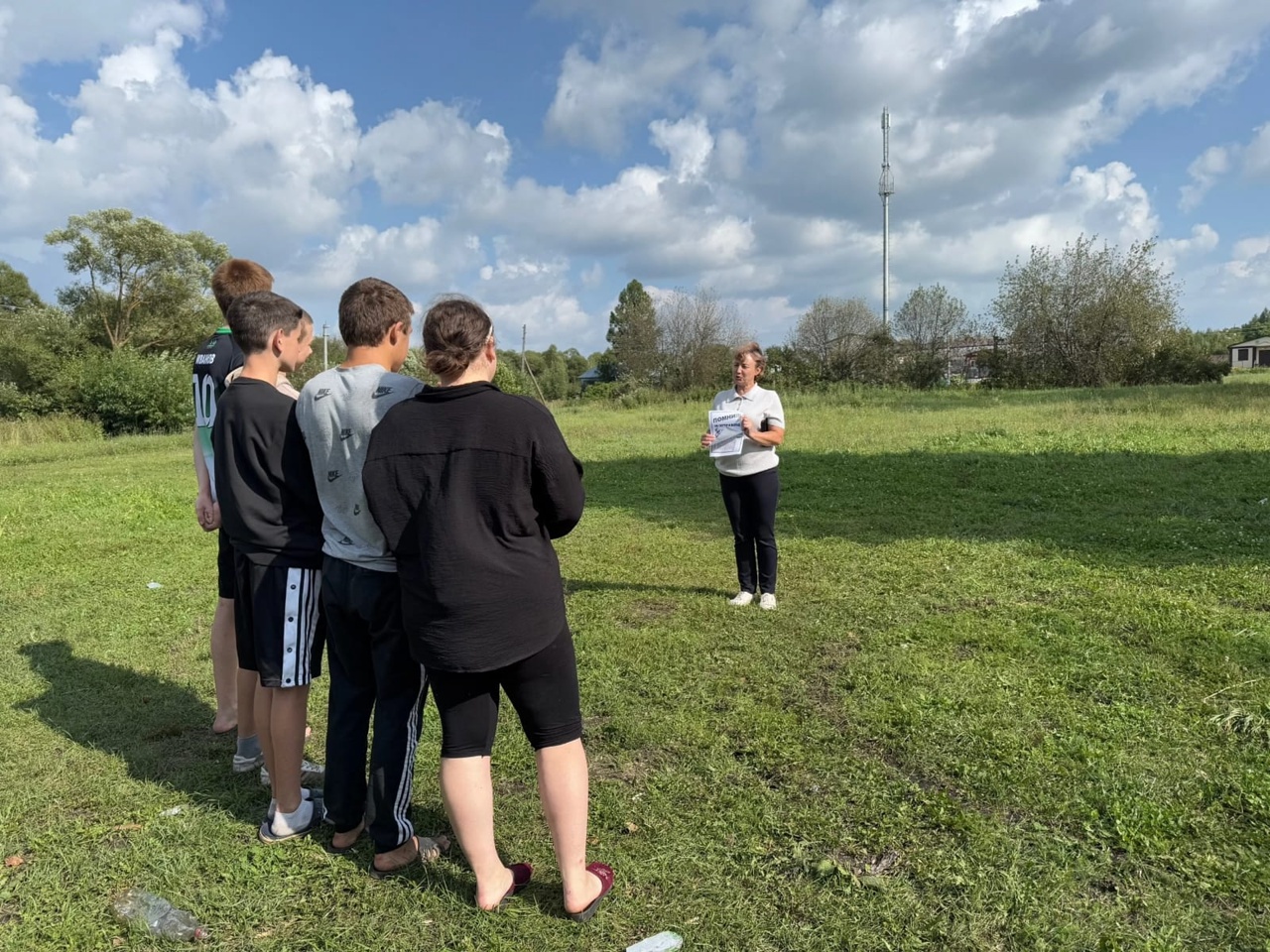 В рамках профилактической работы с несовершеннолетними учителя и родители совершают совместные рейды по местам скопления молодежи. Во время очередного рейда учитель Лапшин С.С. провел с детьми беседу по комплексной безопасности в летний период и напомнил детям о том, что на улице без сопровождения взрослых они могут находиться до 23 часов.