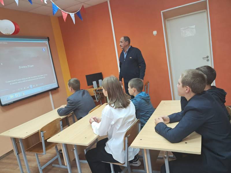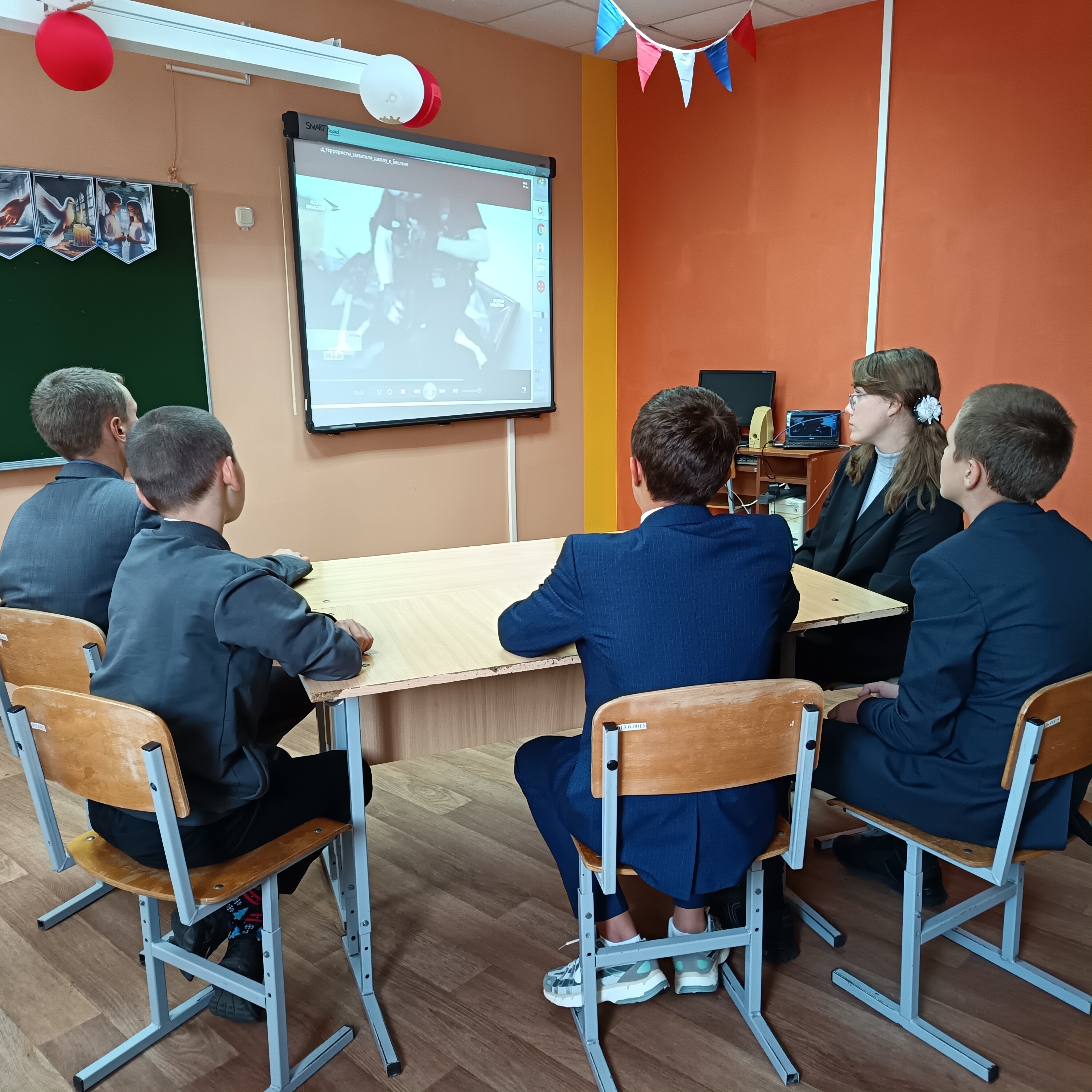 На "Классной встрече" учащиеся беседовали с нашим выпускником, участником СВО Владимиром Д. о престижности военных профессий.