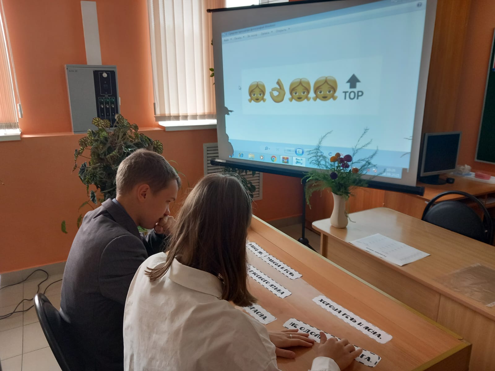 Ученики просмотрели видеоролики, посвященные современному состоянию русского языка, и активно обсудили увиденное. В интерактивной части занятия школьники с удовольствием угадывали пословицы с помощью эмодзи, демонстрируя находчивость и знание народной мудрости. Это позволило в игровой форме закрепить понимание смысла пословиц и поговорок, а также показать, как можно передавать информацию с помощью невербальных средств.