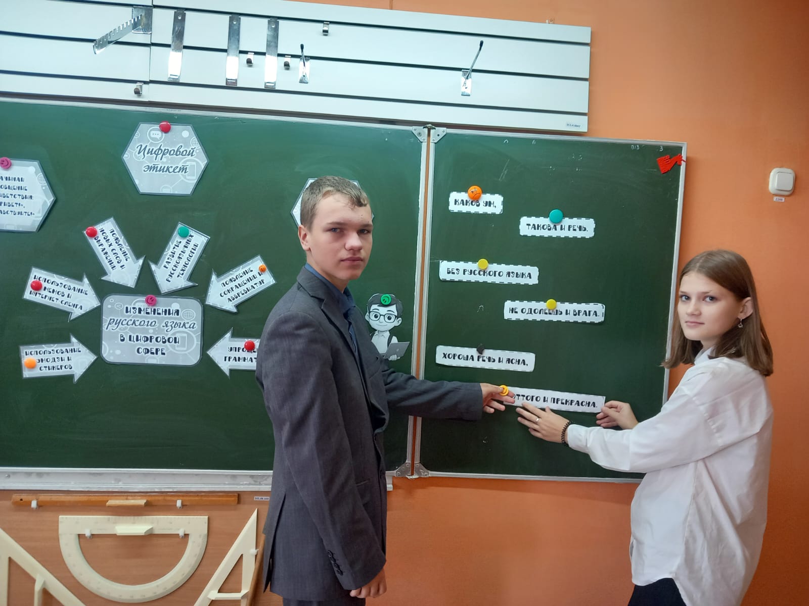 На внеурочном занятии "Разговоры о важном", посвященном грамотности в современном мире, с ребятами поговорили о русском языке и о его изменениях в цифровом мире.