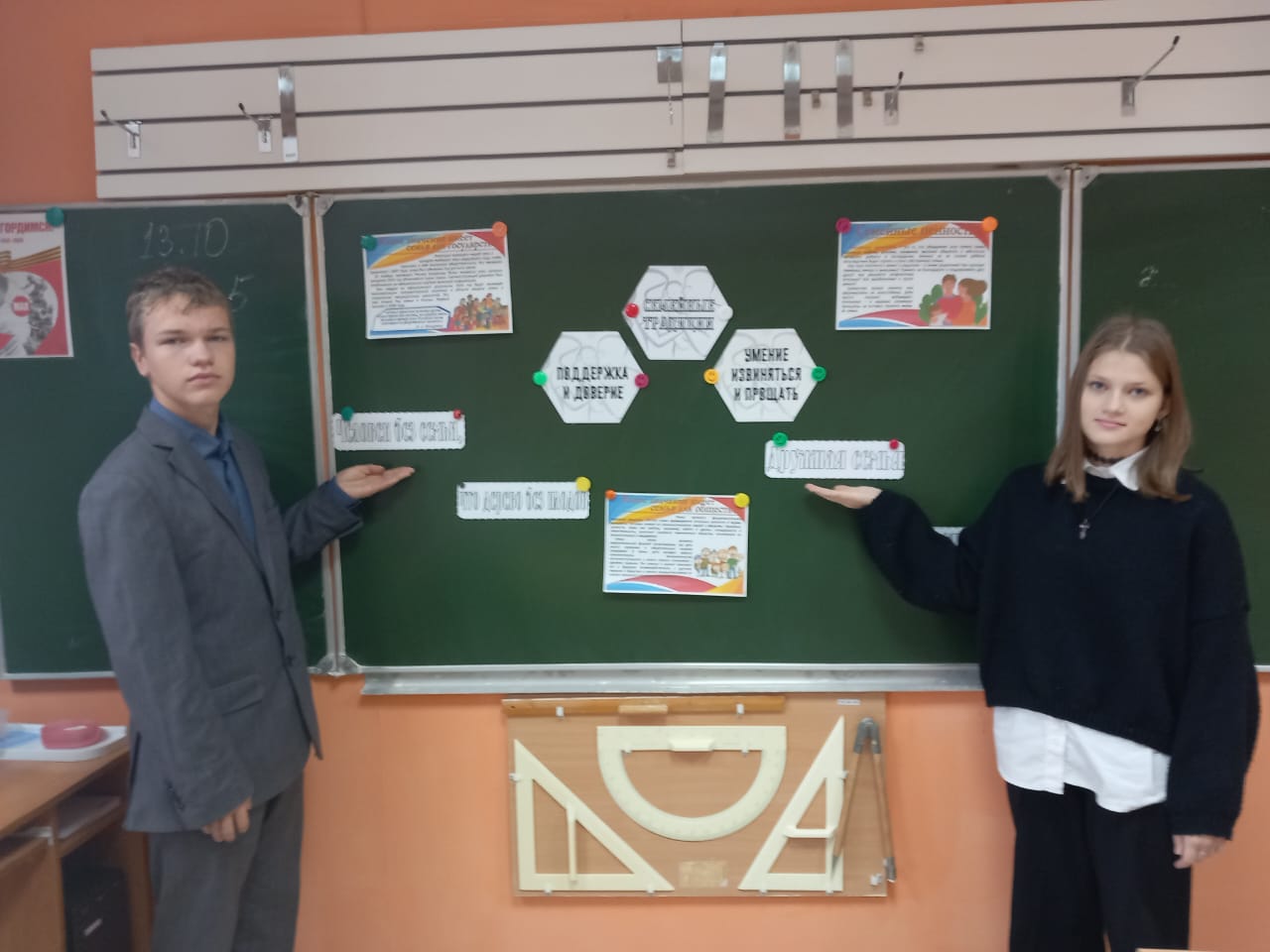 На занятиях затронули тему «отцы и дети», которая нашла широкое отражение в русской литературе и остается актуальной в наши дни. С учащимися обсудили, как преодолеть конфликты и достичь взаимопонимания со старшими родственниками. Также в ходе урока поговорили о государственных семейных праздниках, таких как День отца и День матери, которые будут отмечаться этой осенью, и их роли в укреплении семейных ценностей. Школьники сделали вывод, что в основе семьи лежат доверие, взаимопонимание и преемственность поколений, а преодолеть семейные конфликты и построить гармоничные отношения возможно благодаря взаимному уважению, диалогу и обмену опытом между молодым и старшим поколениями.