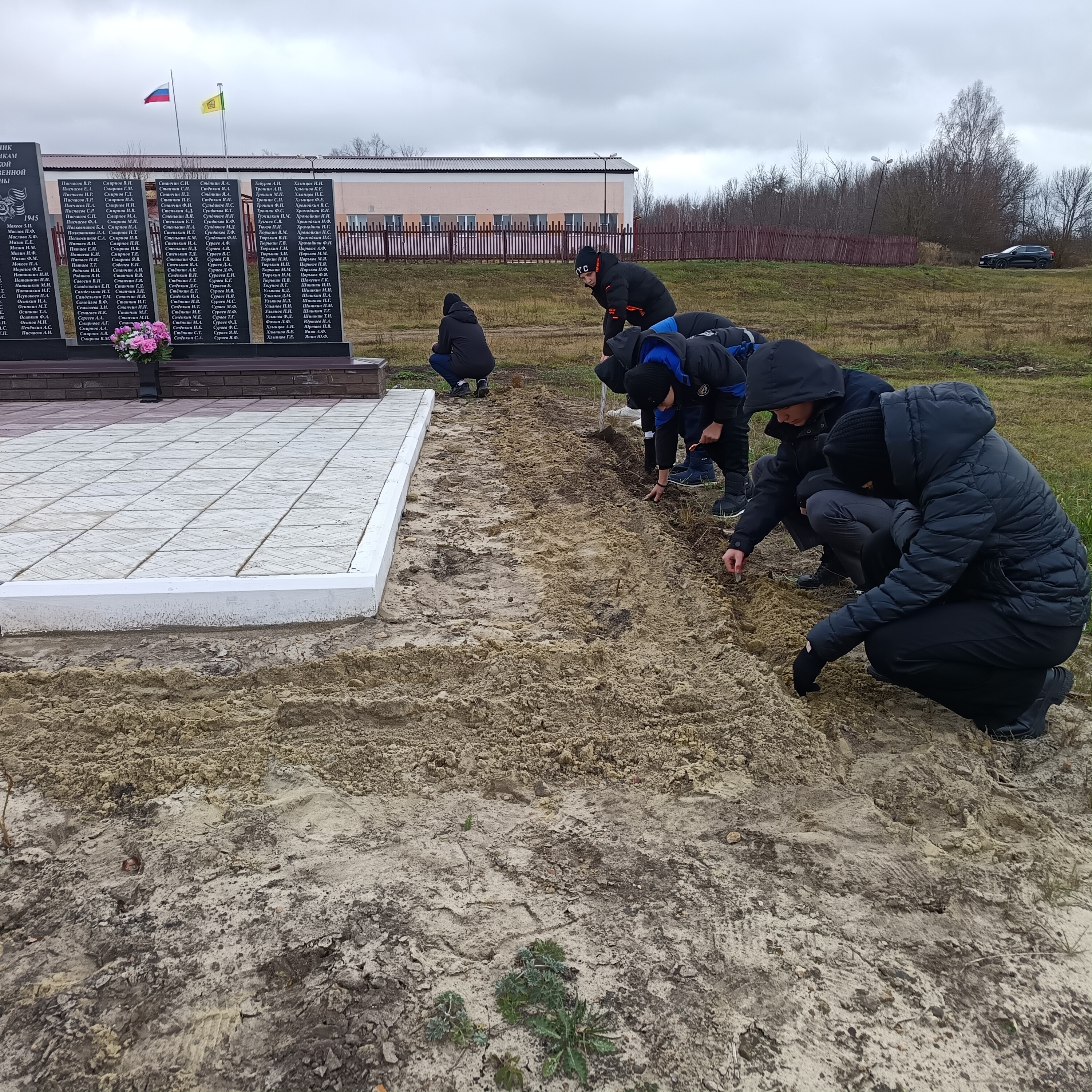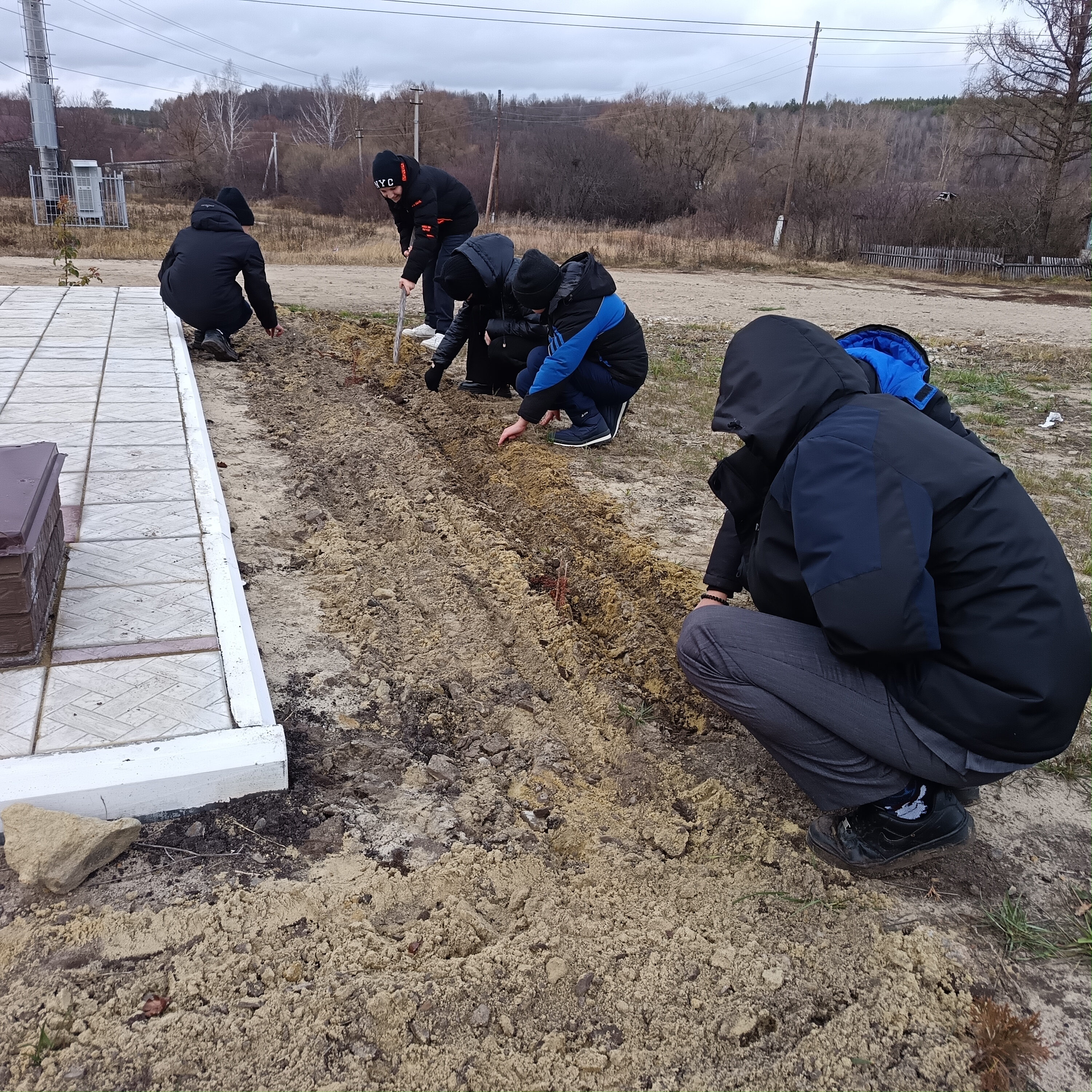 В рамках социальной практики после просмотра фильма года ребята посадили луковицы тюльпанов вокруг памятника участникам Великой Отечественной войны. #КиноурокивШколахРоссии