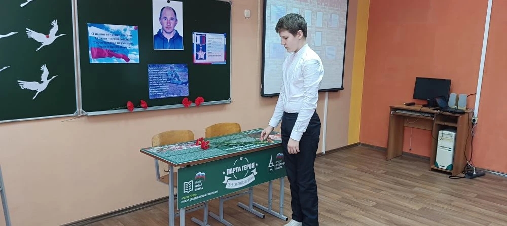 Накануне Дня Защитника Отечества в Кулясовском филиале МБОУ СОШ с. Русский Камешкир было проведено торжественное мероприятие, посвященное дню рождения выпускника нашей школы, участника СВО, посмертно награжденного орденом Мужества, Мангутова Александра Ивановича. На мероприятии учащиеся рассказали биографию Александра. Своими воспоминаниями о нём поделилась его бывший классный руководитель Писчасова В. А. В нашей школе находится Парта Героя Мангутова Александра. Почетное право сесть за нёё предоставляется лучшим активистам Движения Первых. Педагоги, учащиеся и гости возложили в этот день цветы к Парте Героя. Минутой молчания почтили светлую память всех героев, участников сражений во имя Родины. Мы будем стараться, чтобы память о наших героях жила в сердцах каждого из нас.