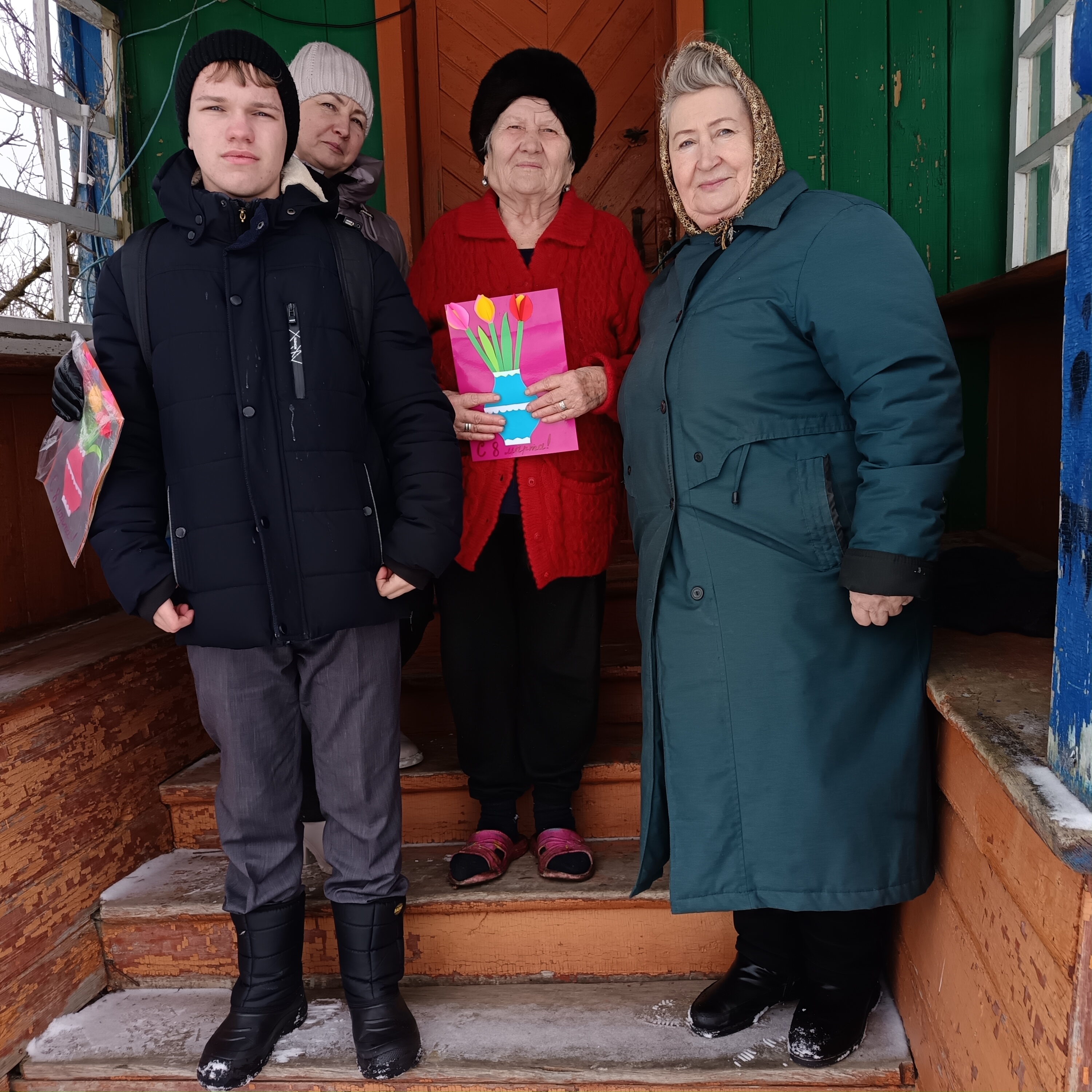 В с.Дубровки группа лыжников встретилась с ветеранами педагогического труда: Агеевой Светланой Яковлевной, Агеевым Владимиром Николаевичем , Горбуновой Марией Алексеевной, Горбуновой Марией Петровной, Бармаевым Леонтием Михайловичем. Ребята поздравили с наступающим Новым 2026 годом учителей -ветеранов, вручив им открытки, сделанные своими руками. В каждую открытку они вложили частичку души и благодарность за многолетний труд. Участники похода пожелали ветеранам благополучия, крепкого здоровья, долгих лет жизни и мирного неба над головой.