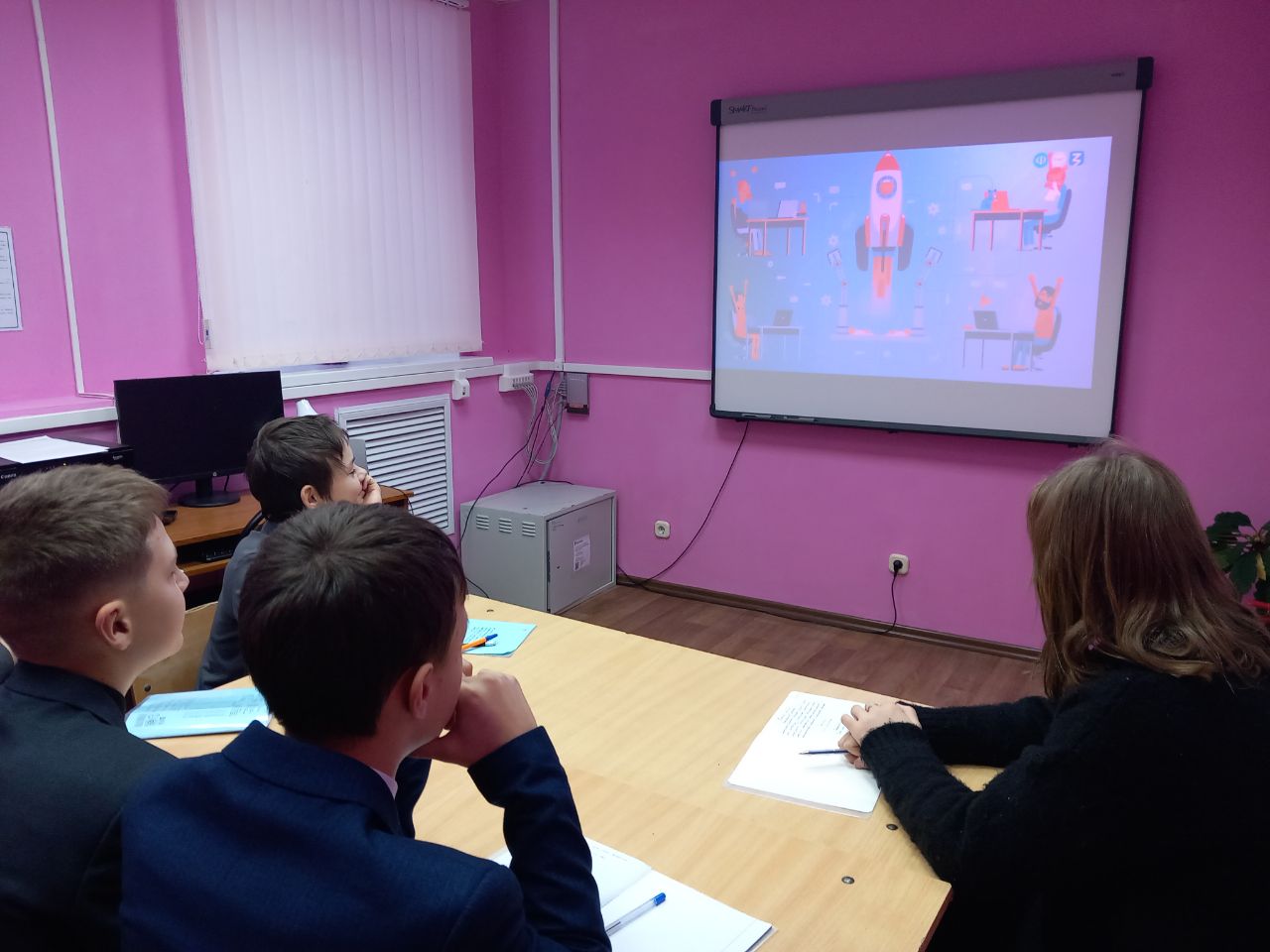 Из видеороликов учащиеся узнали о достижениях России в этих направлениях. В завершении мероприятия учащиеся активно работали в группе, отвечали на вопросы учителя, называя подходящую профессию соотнося её со списком действий и задач.