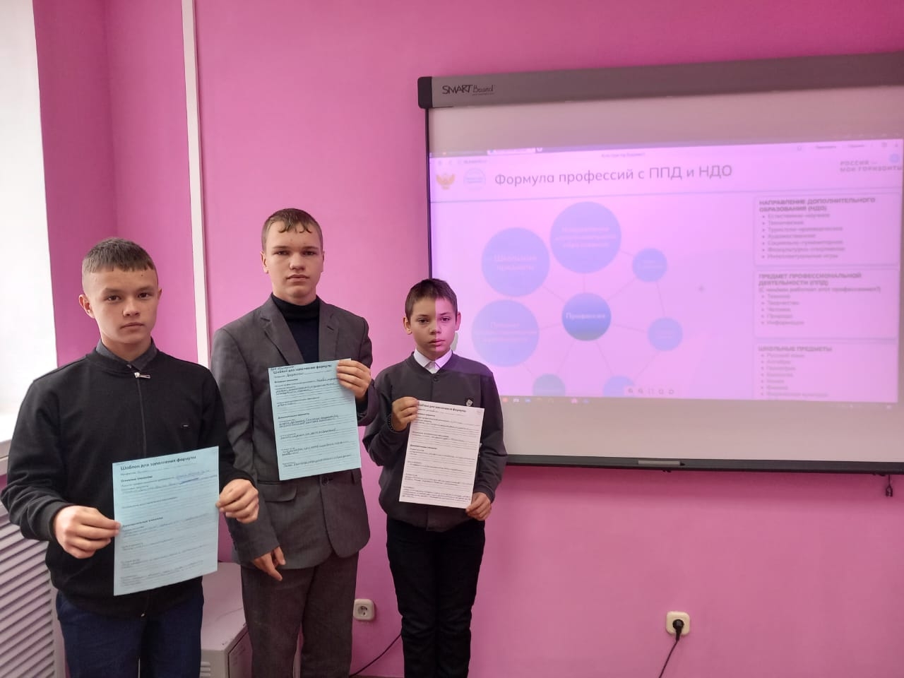 В начале урока учеников ознакомили с подробным планом работы на предстоящий год. Ребята завели маршрутные карты – дневники профориентационного развития. В них они будут фиксировать свои открытия, идеи, чтобы через некоторое время с интересом оглянуться назад и увидеть пройденный путь.
