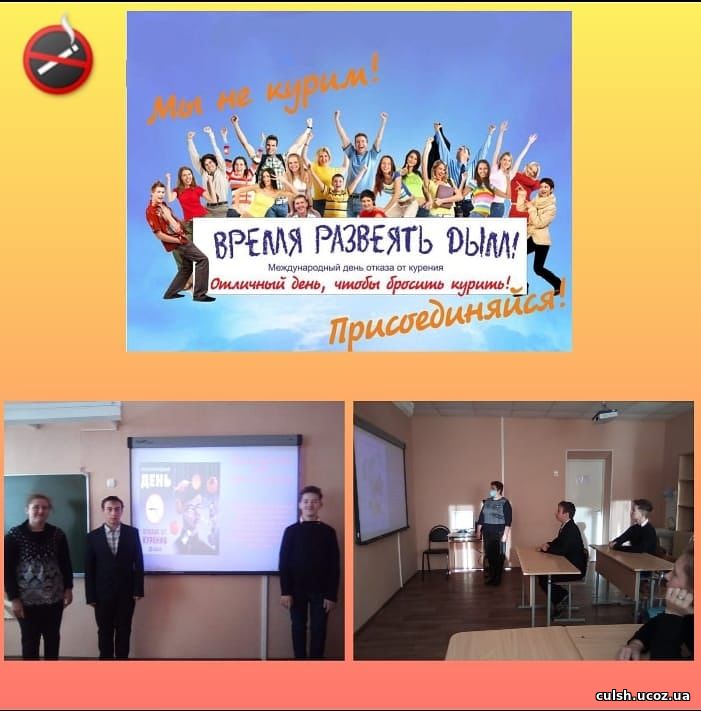 19 ноября 2020 года в Международный день отказа от курения с учащимися 9 класса Кулясовского филиала МБОУ СОШ с Русский Камешкир проведен информационный час "Курить - здоровью вредить!" В ходе беседы были затронуты острые проблемы борьбы с табакокурением. Ребята выявили основные причины вреда никотиновой зависимости и сделали для себя определенные выводы.