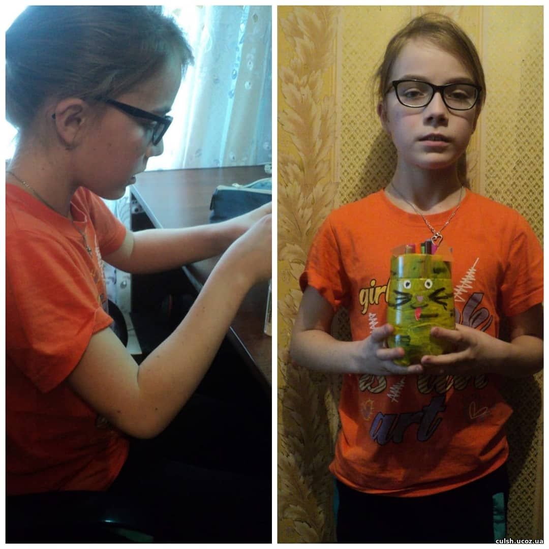 24 января 2021 года Станчин Захар и Ястребова Маргарита, учащиеся начальных классов Кулясовского филиала МБОУ СОШ с. Русский Камешкир, приняли участие в акции "Арт-объект из пластиковой упаковки". Дети самостоятельно изготовили подставки для карандашей из пластиковых бутылок.