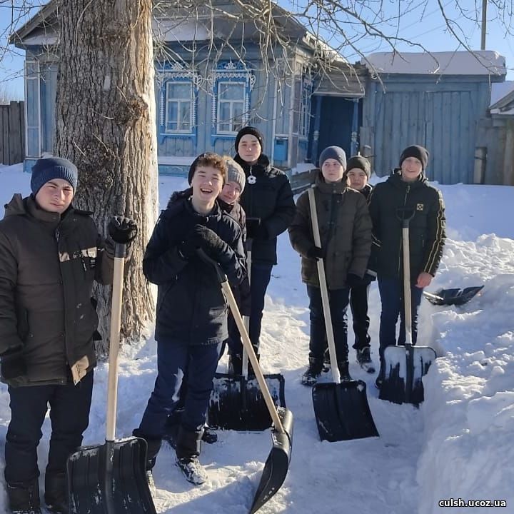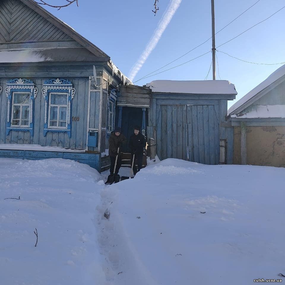 Юнармейцы Кулясовского филиала МБОУ СОШ с. Русский Камешкир продолжают оказывать помощь труженице тыла Хромойкиной Марии Семеновне. 1 февраля 2021 расчистили от снега территорию домовладения.