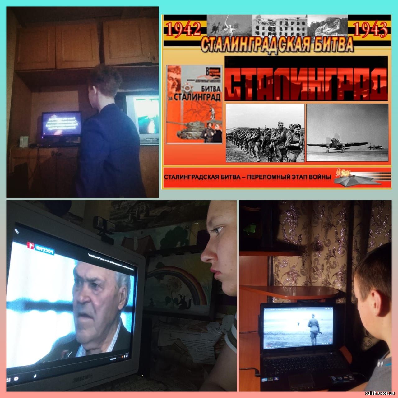 2 февраля 2021 года учащиеся 9 класса Кулясовского филиала МБОУ СОШ с Русский Камешкир в онлайн режиме просмотрели документальный фильм "Сталинградская битва". Город - герой навечно вошел в историю как символ несокрушимости российского войска. Документальные кадры боев за Сталинград произвели на ребят большое впечатление.