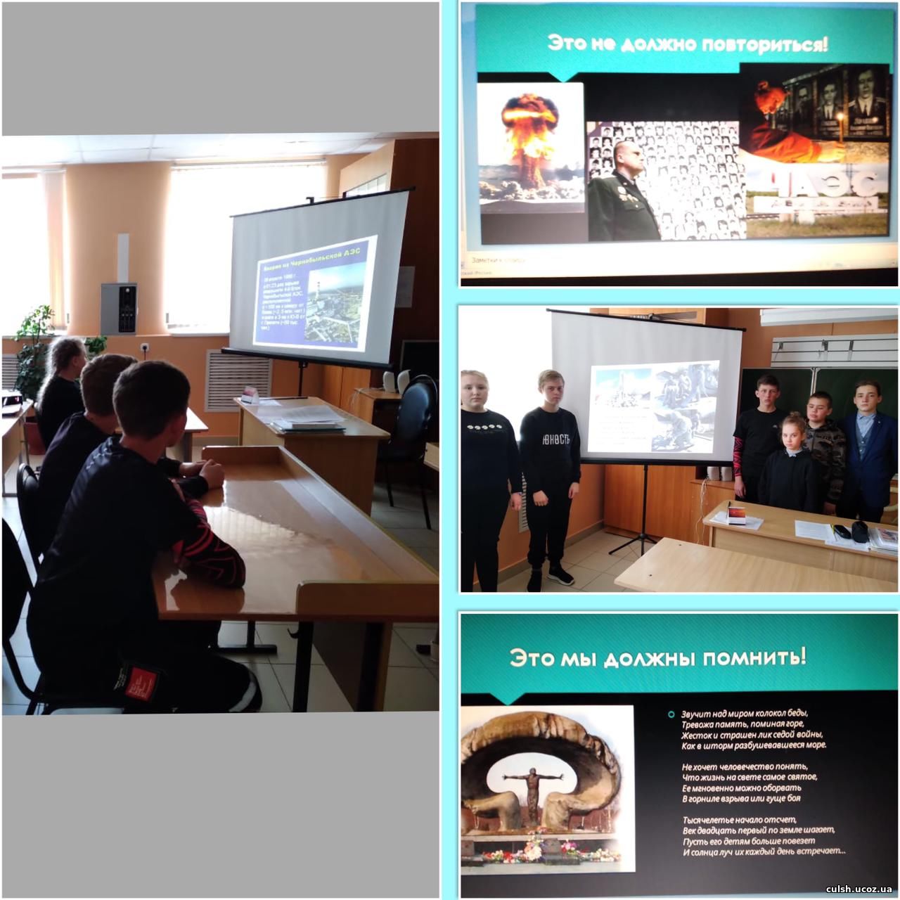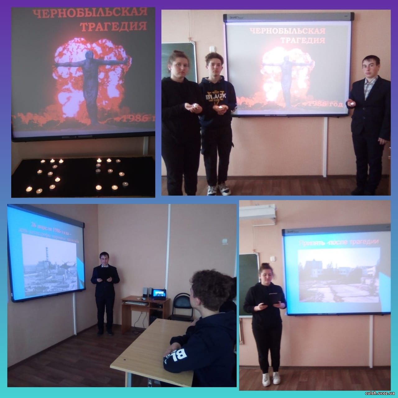 26 апреля 2021 года с учащимися Кулясовского филиала МБОУ СОШ с Русский Камешкир прошел классный час "Чернобыль: трагедия, подвиг, предупреждение.", посвященный 35 - летию годовщины со дня аварии на ЧАЭС. Ребята узнали о событиях 1986 года, о подвиге людей и последствиях этой катастрофы. Коновец Анна и Кудяков Александр прочитали стихи памяти героям ликвидаторам аварии. В конце мероприятия учащиеся почтили память жертв Чернобыльской катастрофы минутой молчания и зажжением свечей в виде цифры 35.