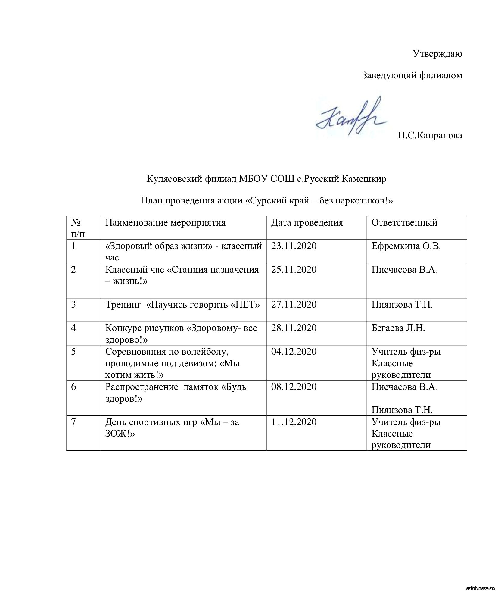 Положение о Кулясовском филиале МБОУ СОШ с.Русский Камешкир