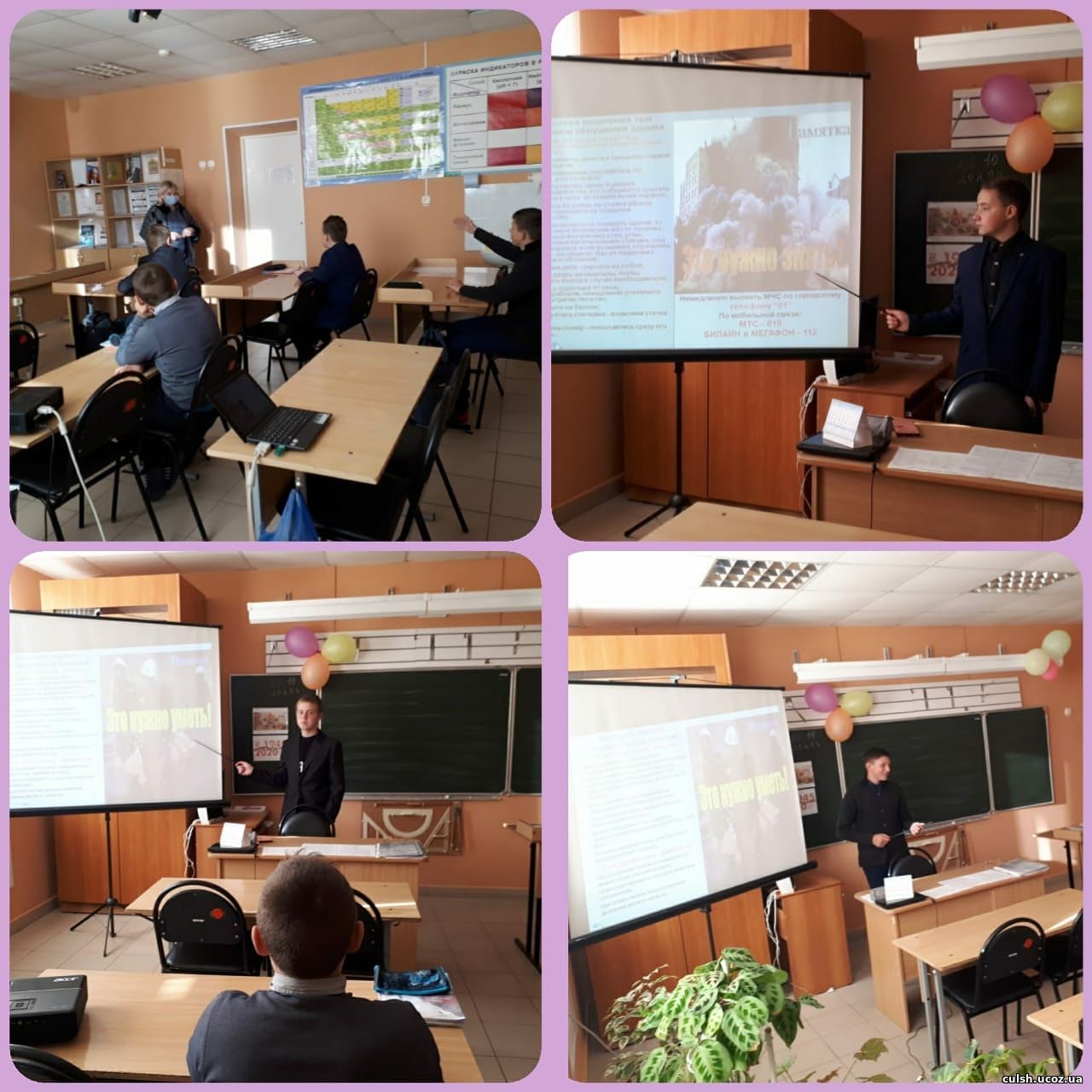 28 октября 2020 года в рамках месячника по Гражданской обороне в 8 классе Кулясовского филиала МБОУ СОШ с.Русский Камешкир прошел классный час, в ходе которого учащиеся совершили интересное и увлекательное путешествие по станциям в мир безопасной жизнедеятельности. На каждой станции выполняли самые разнообразные задания. |