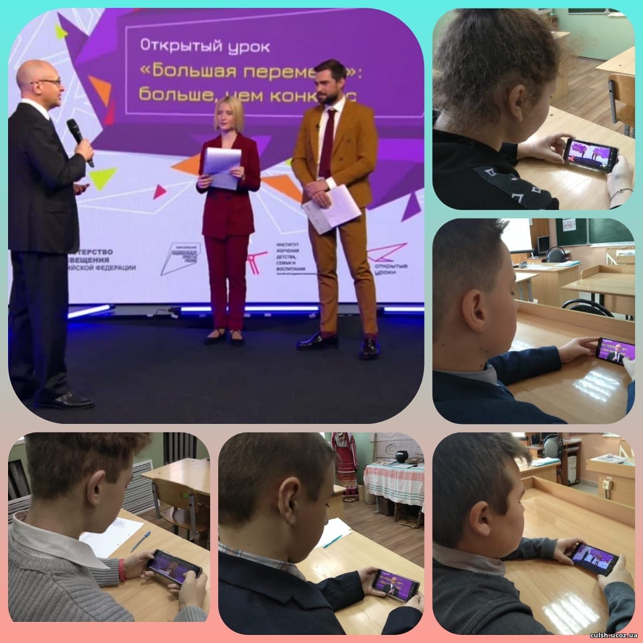 30 ноября 2020 года учащиеся 8-9 классов Кулясовского филиала МБОУ СОШ с Русский Камешкир посмотрели Всероссийский открытый урок "Большая перемена": больше, чем конкурс", посвященный итогам первого сезона Всероссийского конкурса для школьников "Большая перемена" - проекта президентской платформы "Россия - страна возможностей" |