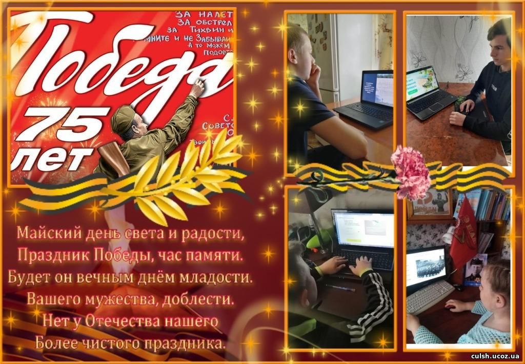 7 мая 2020 года в преддверии 75 -летия Великой Победы учащиеся 5,7 и 9 класса Кулясовского филиала МБОУ СОШ с.Русский Камешкир просмотрели видеоурок, посвящённый 75-летию полного снятия блокады Ленинграда, а также приняли участие в уроке-квизе “75 лет Великой Победы”.Все три раунда в игре были интересными. По словам учащихся, это была не просто игра, а познавательная книга с иллюстрациями, благодаря которой еще больше узнали о войне, еще больше стали восхищаться силой и мужеством солдат и командующего состава. Вечная им слава!